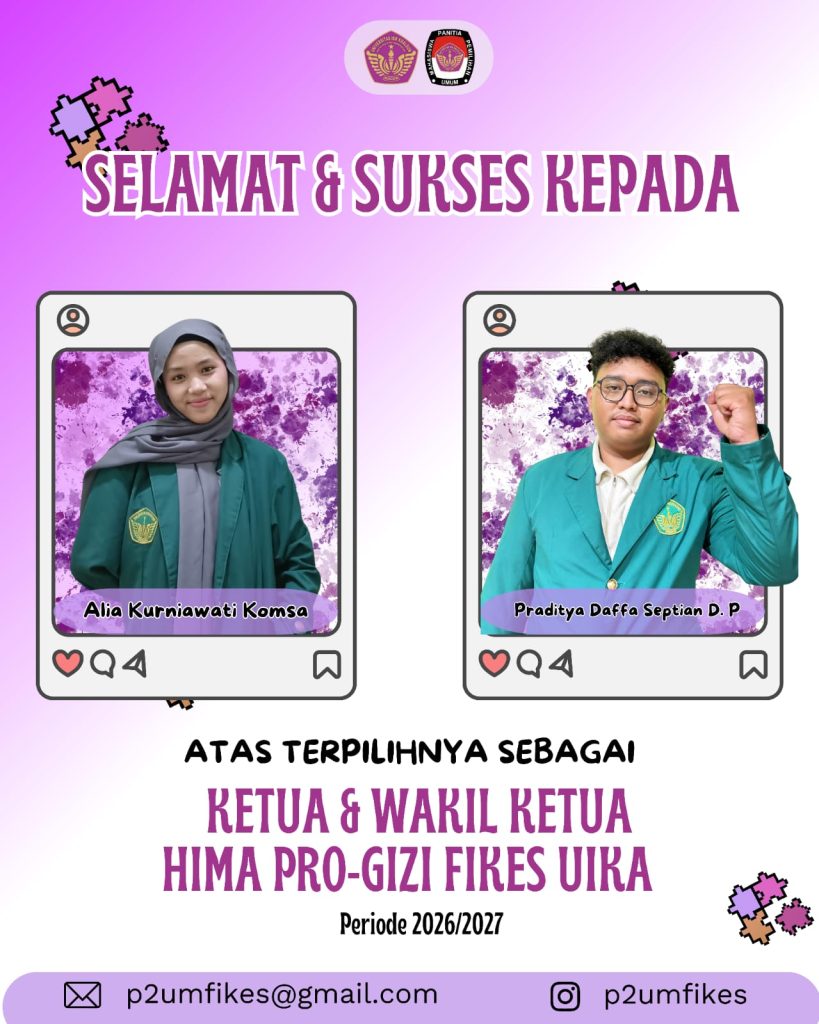 Alia Kurniawati Komsa dan Praditya Daffa Septian D. P yang telah terpilih sebagai ketua dan wakil ketua HIMA PRO-GIZI Fakultas Ilmu Kesehatan periode 2026-2027 dan