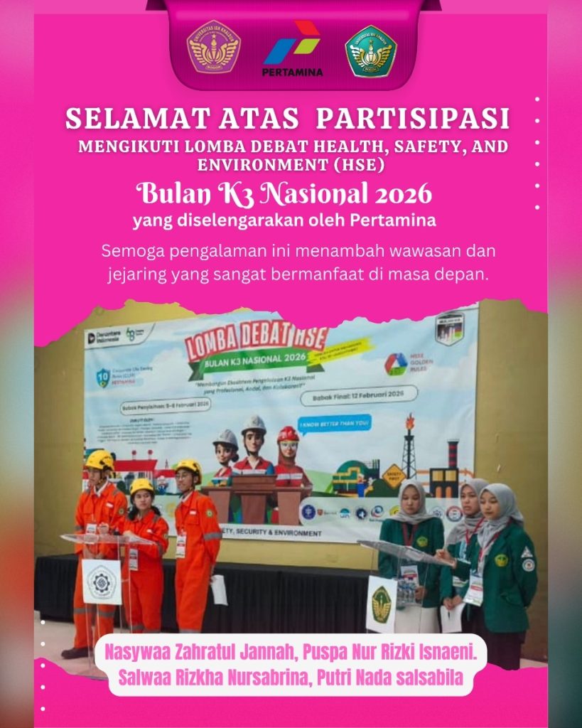 Selamat atas MengikutiLomba Debat Health, Safety, and Environment (HSE)Bulan K3 Nasional 2026 March 6, 2026March 6, 2026 admin@fikes 👏 Apresiasi setinggi-tingginya kepada:Nasywaa Zahratul JannahPuspa Nur Rizki IsnaeniSalwaa Rizkha NursabrinaPutri Nada Salsabila March 2026 M T W T F S S 1 2345678 9101112131415 16171819202122 23242526272829 3031